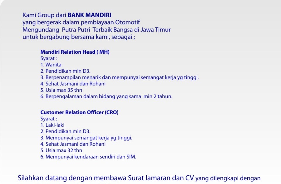 Yang bisa bapakibu guru unduh secara gratis dengan menekan tombol download. Melalui teller bank mandiri atau mandiri mikro cabang. Contoh soal psikotes, psikotes, soal cpns, soal psikotes, soal psikotes 2016, soal tes bank, soal tes bumn, soal tes pertamina, soal ujian bank seperti pengalaman admin dan diambil dari berbagai sumber bahwa psikotes dipakai pada ujian ujian jabatan perbankan bank bri, bank mandiri, bank. Bubuhkan √ pada kotak di sebelah kanan. Pt mandiri utama finance (muf) menargetkan menjadi lima besar perusahaan multifinance terbesar di indonesia pada 2021.